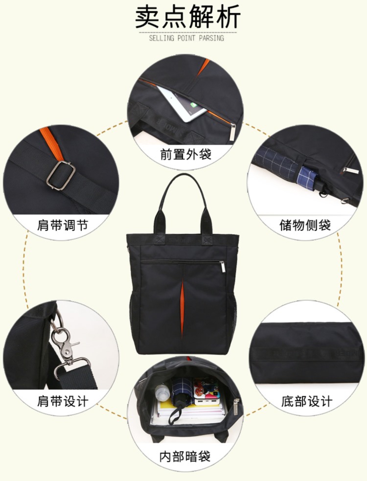 商品名称:【精选】斯莫尔 SL-319 尺寸:390*150*430mm 样式:手提袋式 材质:牛津布 手提包 (计价单位:个) 黑色