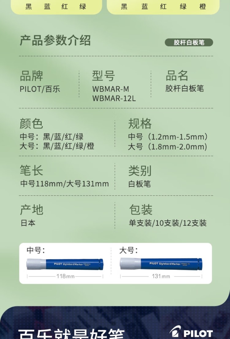 商品名称:【精选】百乐 PILOT 胶杆白板笔 WBMAR-M (黑色) 12支/盒
