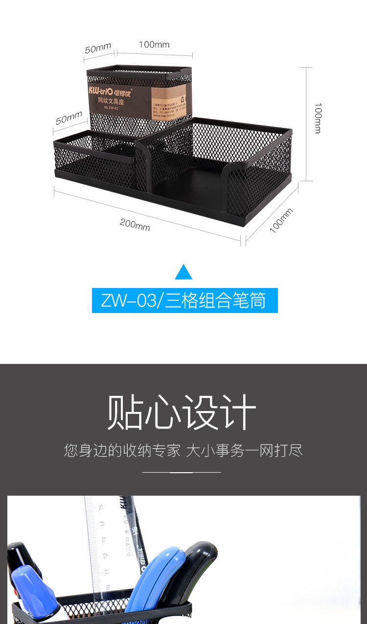 商品名称:【精选】可得优 ZW-03 100*200*100mm 长方形铁网组合文具座 (计价单位:个) 黑色