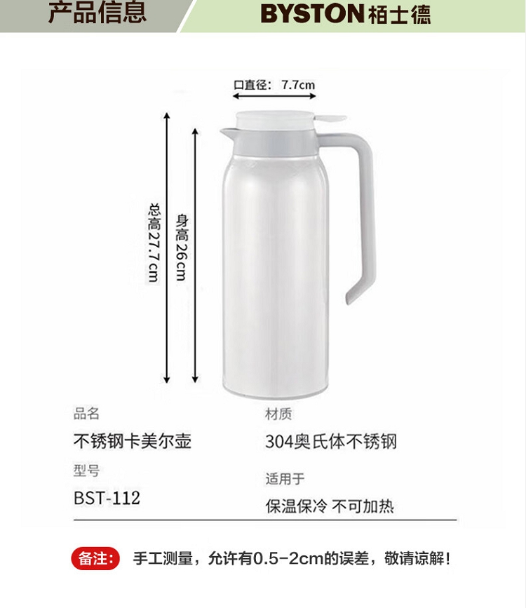 商品名称:【精选】栢士德(BYSTON) BST-112 1500ML 保温壶 (计价单位:个)