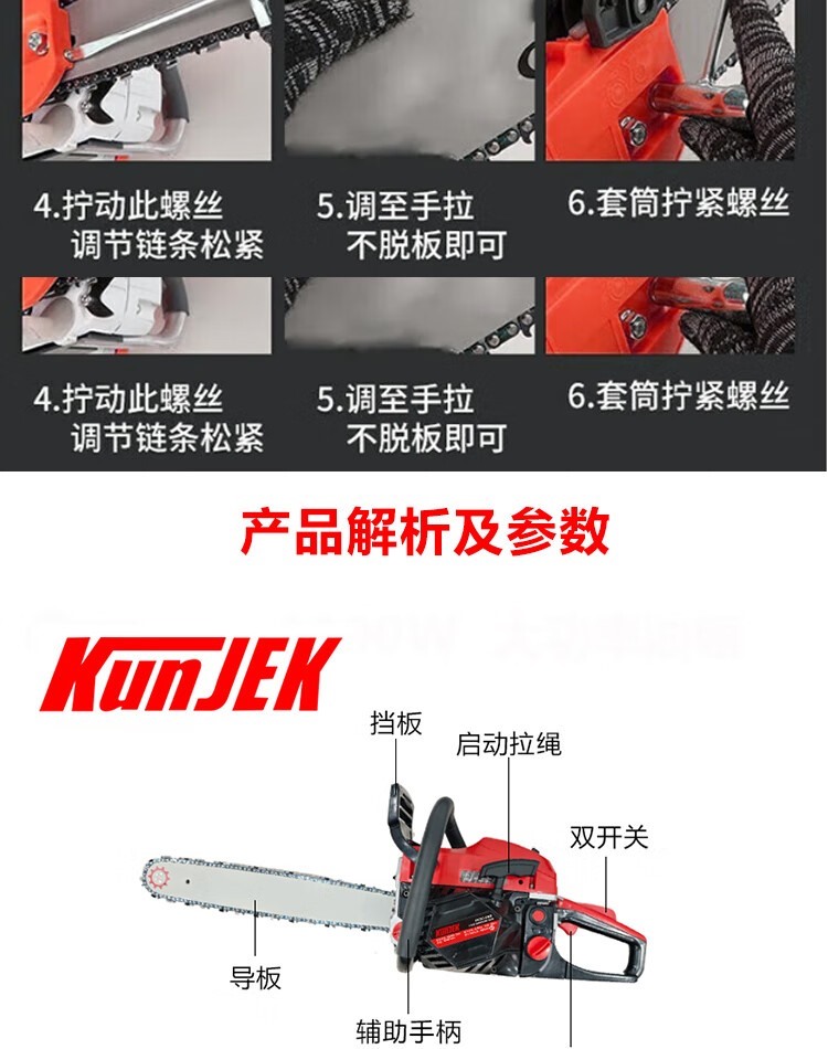 商品名称:【精选】昆杰 H630-294 手持式油锯伐木锯 额定功率9.9KW (计价单位:台)