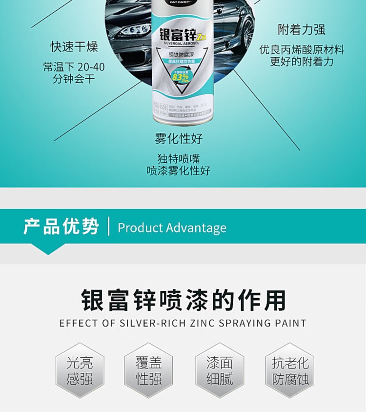 商品名称:【精选】普速 银富锌喷漆整箱 450ml*12瓶 PUSU4508 自喷修补漆防腐装饰喷漆防锈漆手摇