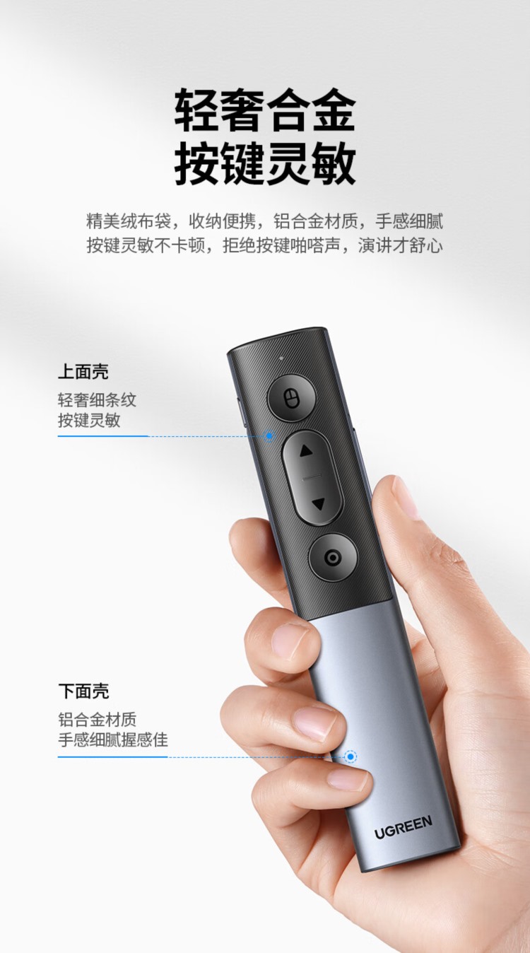 商品名称:【精选】绿联 LP480 激光笔 PPT翻页笔 空中飞鼠LED液晶屏数字激光笔