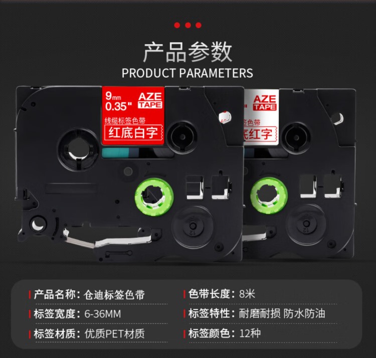 商品名称:【精选】仓迪CANGDI 标签机色带 AZE-451适用兄弟24㎜不干胶兄弟标签机色带 AZE-451 红底黑字24㎜