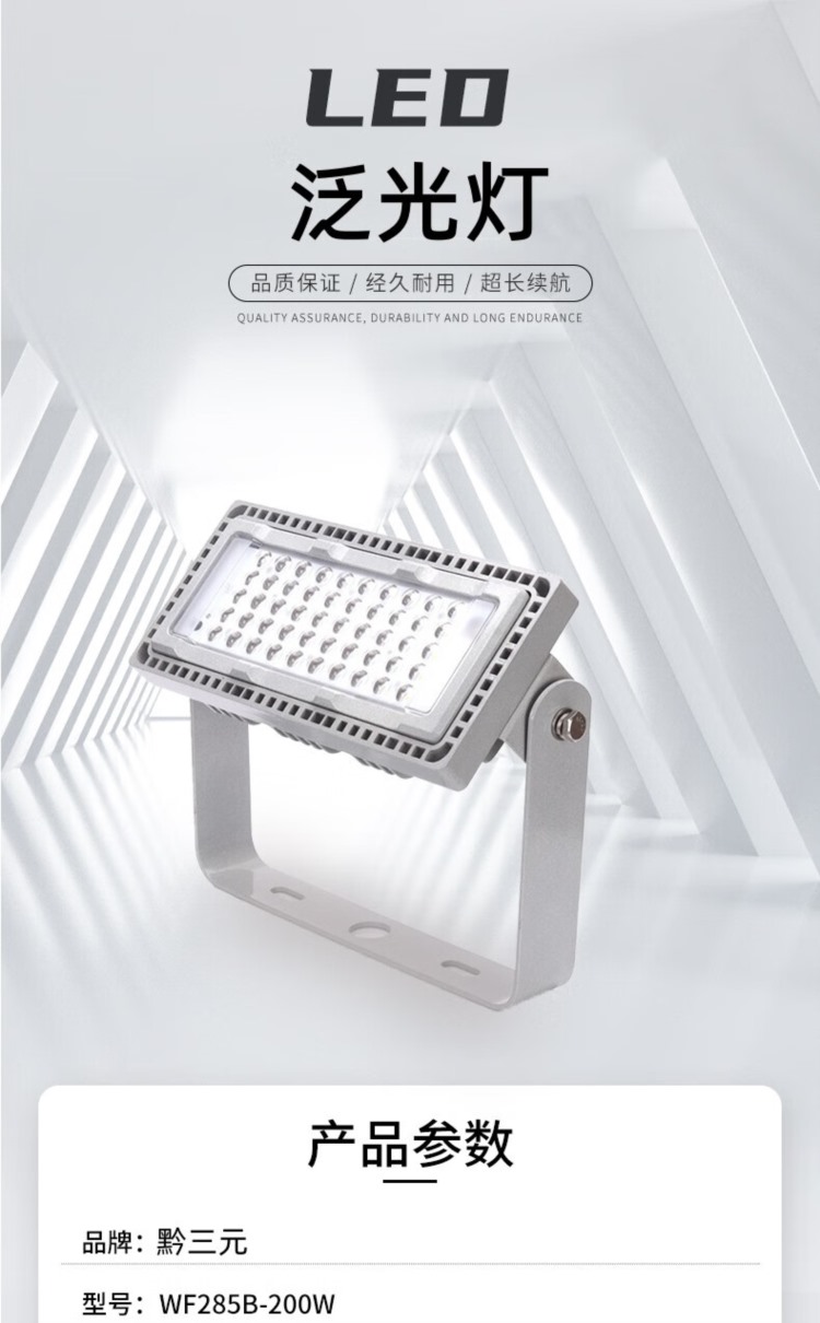 商品名称:【精选】黔三元 LED泛光灯 WF285B-200W 100W-200W(含)(5000K以上) 银色