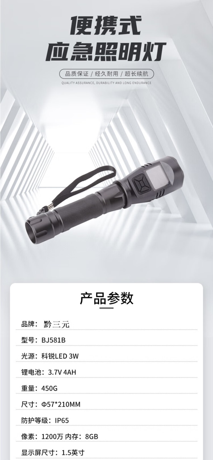 商品名称:【精选】黔三元 多功能带屏摄像电筒 BJ581B