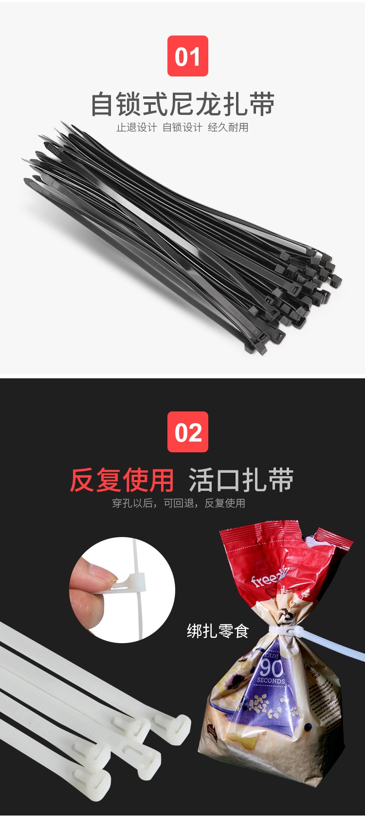 商品名称:【精选】卡夫威尔(GBHX) 自锁式尼龙扎带小号工业扎丝 园艺扎线带 扎带理线带束线带捆扎带 3.6*100mm 黑色 100支装 OT3060