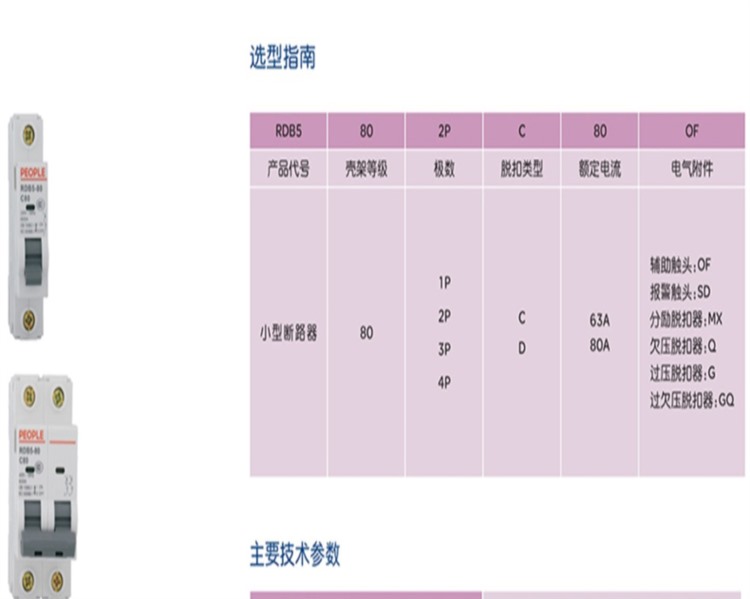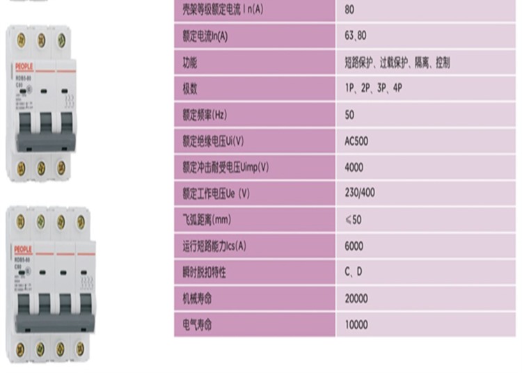 商品名称:【精选】人民电器 RDB5 空气开关 80A C型 2P (计价单位:个)
