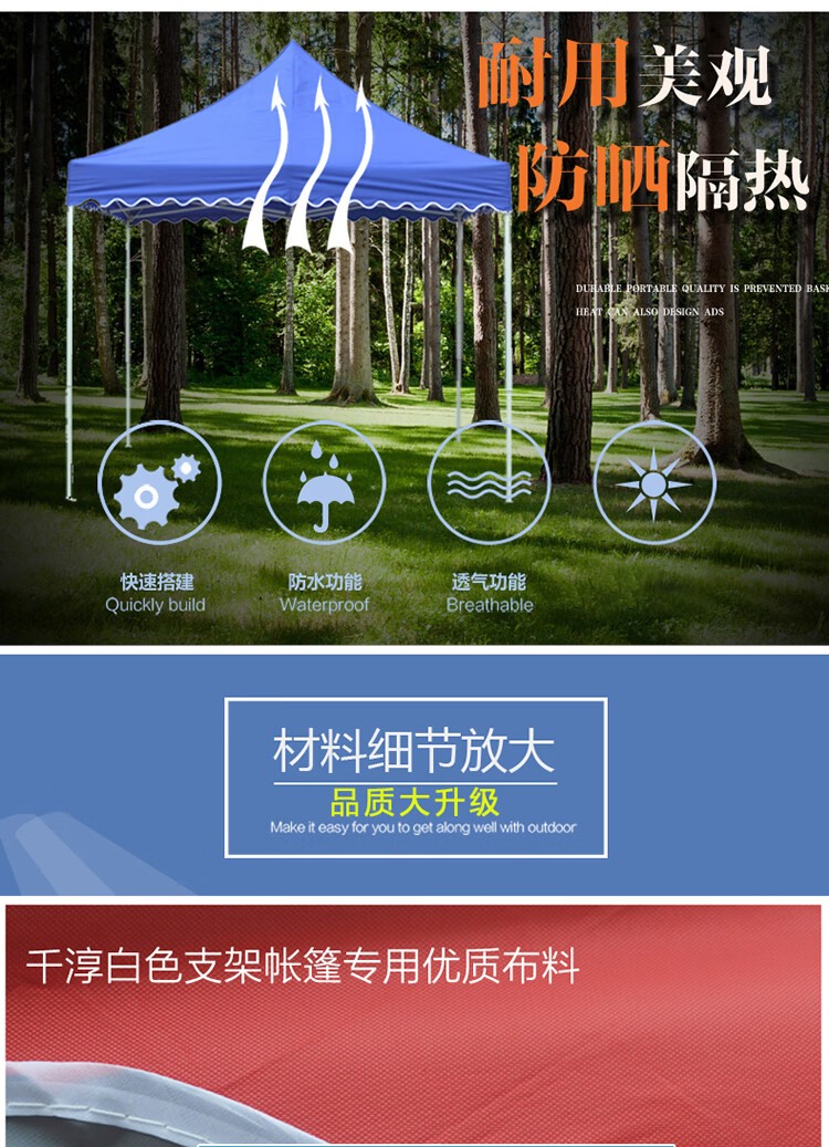 商品名称:【精选】圣邦 牛津布加粗白架伸缩雨棚 3X3M 红、蓝色可选