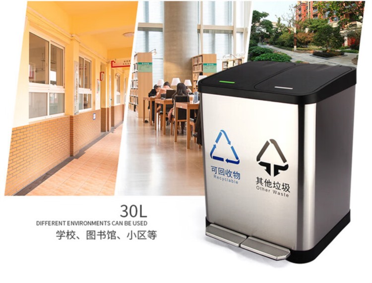 商品名称:【精选】科力邦 脚踏分类垃圾桶 KB1081 双桶 30L