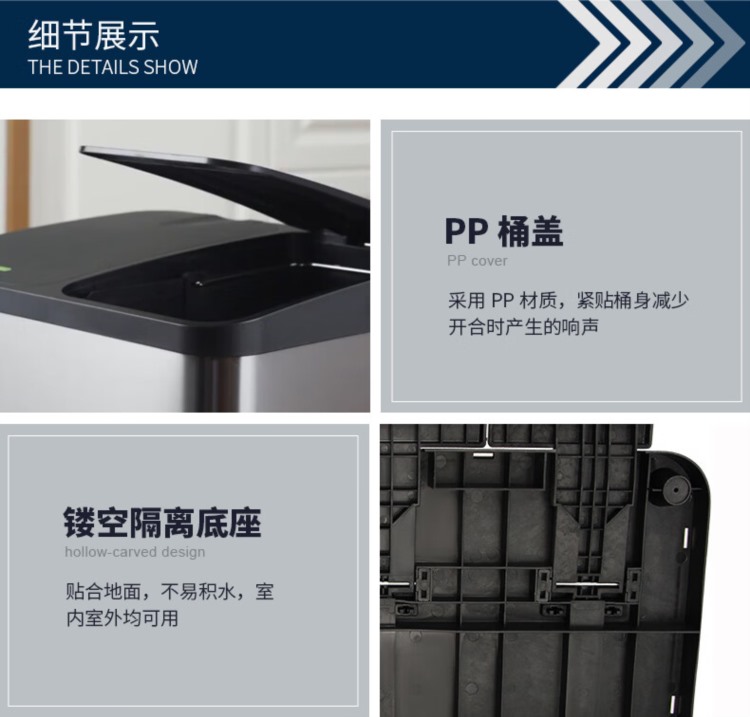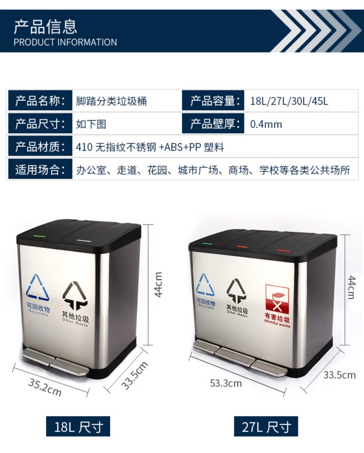 商品名称:【精选】科力邦 KB1081 分类垃圾桶 不锈钢 大号带盖 脚踏式静音 18L(GBHX) 计价单位:个