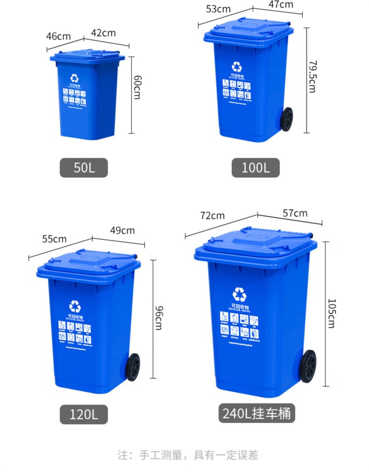 商品名称:【精选】科力邦 干湿分类垃圾桶 KB1041 240L 720*570*1050mm 塑料 有害垃圾 可挂车 红色