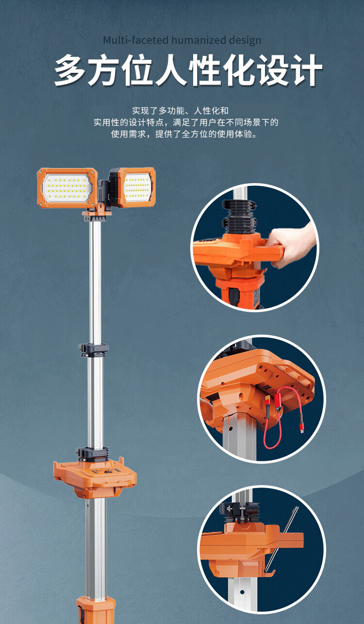 商品名称:【精选】华翼电气 GJC-40032 双灯头升降式移动照明设备 长续航版 8小时续航 一电一充(单位:台)
