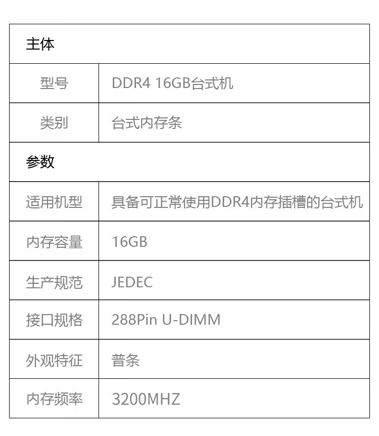 商品名称:【精选】盈通 台式内存条 DDR4台式机 16G 3200 PC