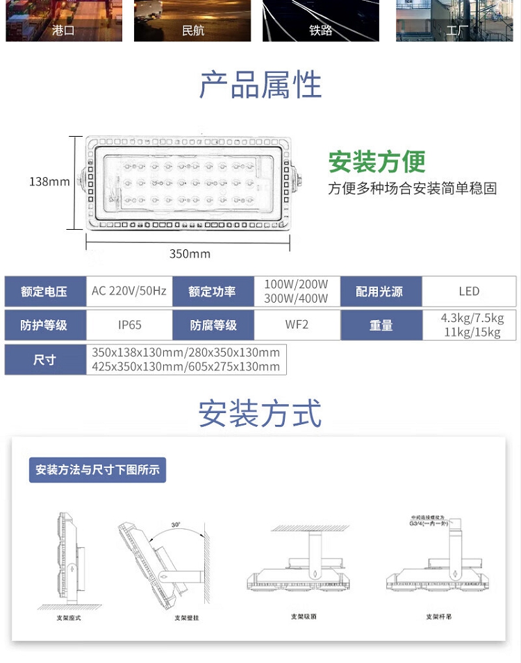 商品名称:【精选】明特佳(Mintega) NZTD9205-L300 300W LED投光灯 灰色(套)
