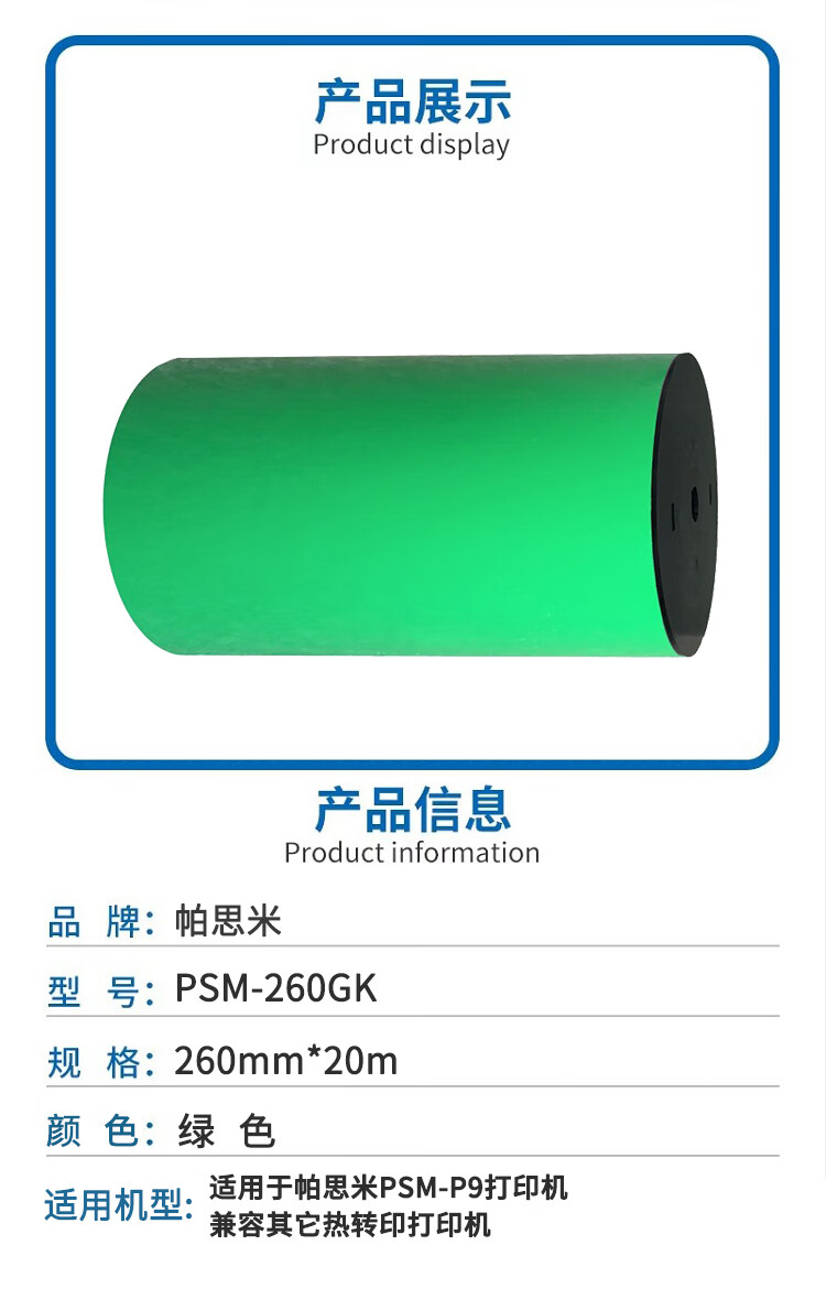 商品名称:【精选】帕思米 PSM-260GK 标签胶贴/宽胶 规格260mm*20m 绿色