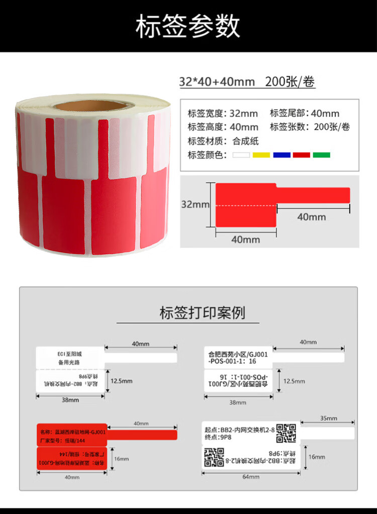 商品名称:【精选】帕思米 GJC-PSM10026 P型 线缆热转印标签纸 32*40+40mm 红色 (200张/卷) 单位:卷