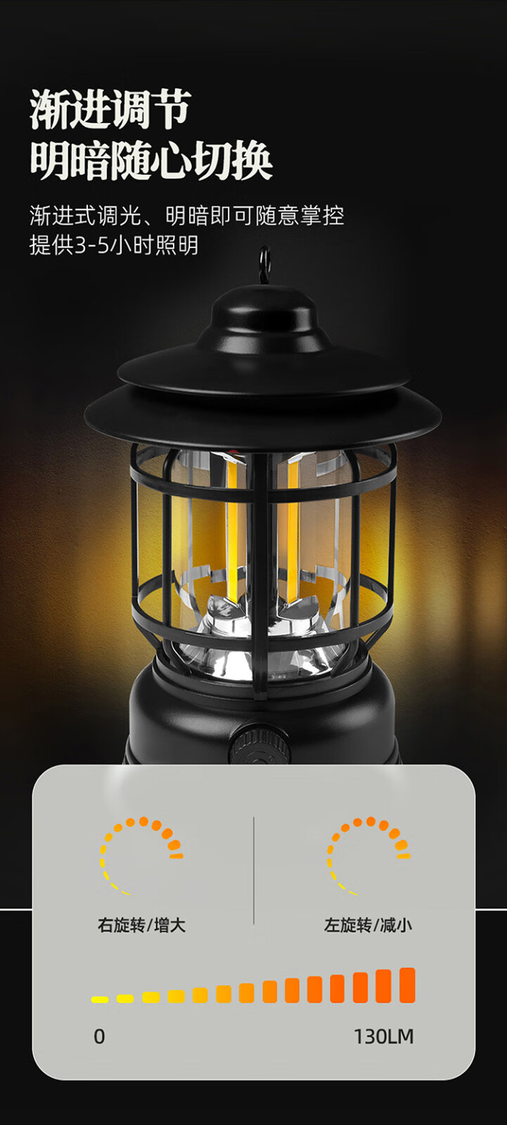 商品名称:【精选】徽羚羊 复古野营灯 充电款 (黑色)