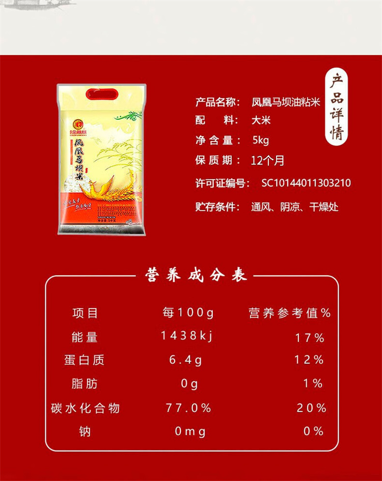 商品名称:【精选】金凤凰玉竹 油粘米 5kg 大米 (计价单位:袋)