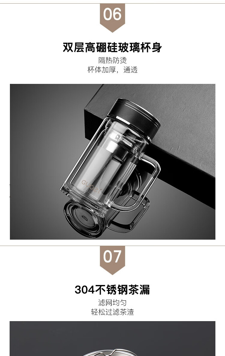 商品名称:【精选】果兹(GUOZI) 星朗双层玻璃办公杯