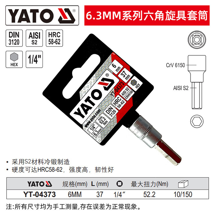 商品名称:【精选】易尔拓 1/4"六角旋具套筒HEX6X37MMYT-04373