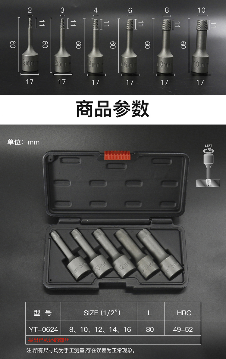 商品名称:【精选】易尔拓 12件套断丝取出器组套Φ3-24MMYT-0591