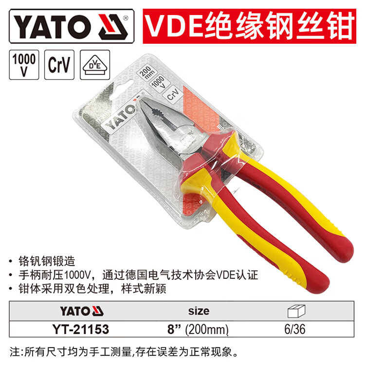 商品名称:【精选】易尔拓 绝缘钢丝钳8"(200MM)YT-21153