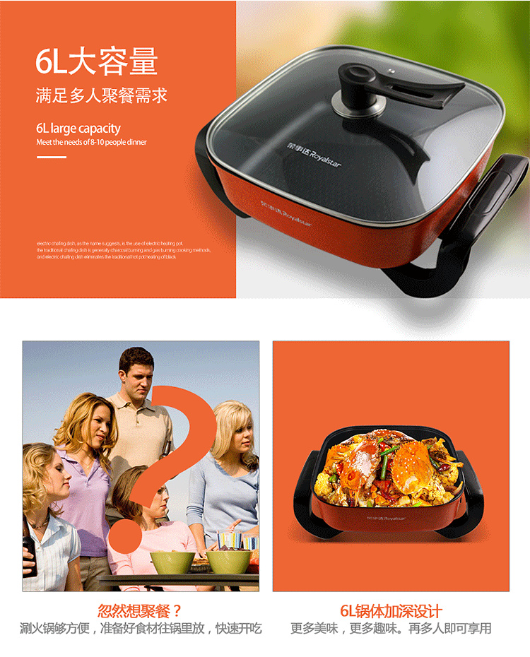 商品名称:【精选】荣事达多功能电热锅HG15F7