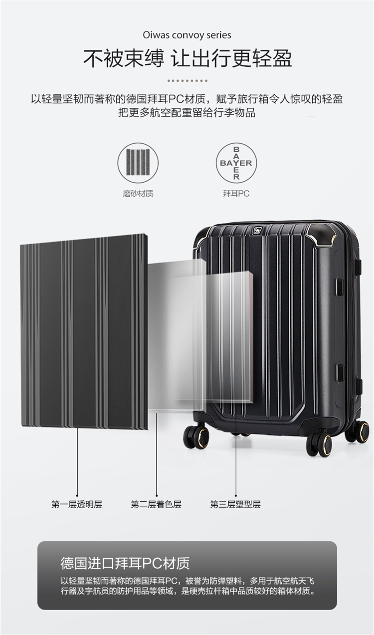 商品名称:【精选】爱华仕(OIWAS)拉杆箱 PC材质飞机轮拉杆箱 双层防爆拉链 护角硬箱OCX6367-24:颜色分类:炭灰色