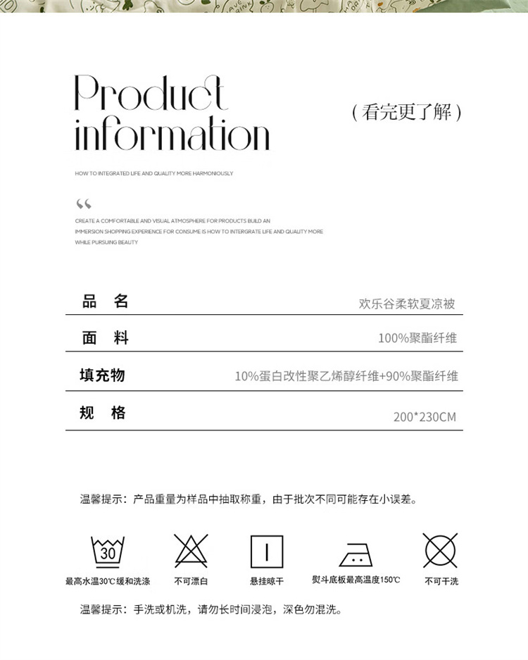 商品名称:【精选】恒源祥TSB2051欢乐谷大豆柔软夏凉被200*230cm单位:条
