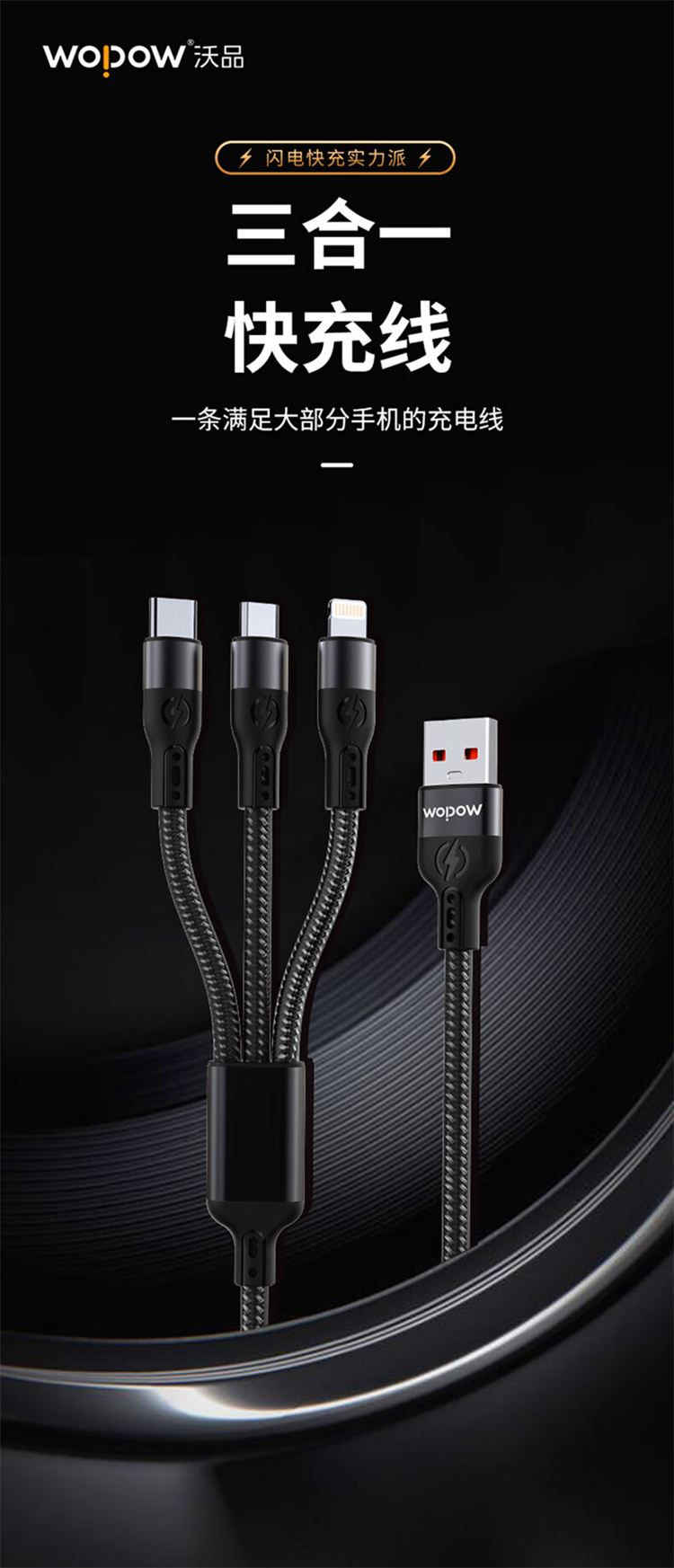 商品名称:【精选】沃品快充一拖三数据线 LC026