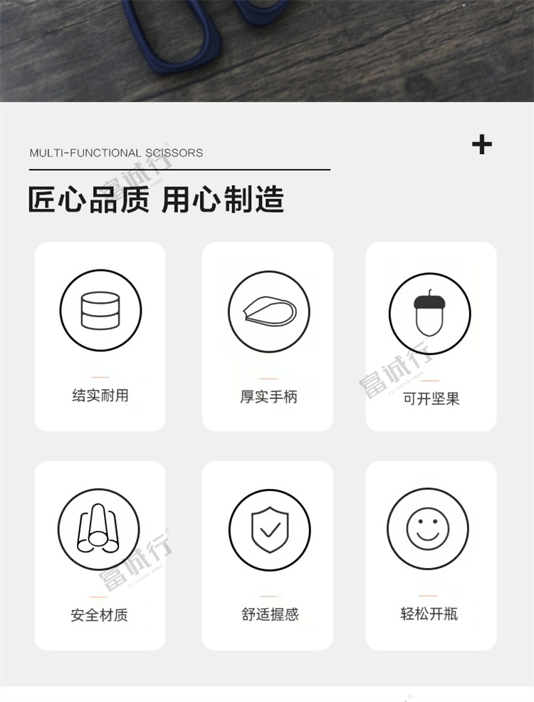 商品名称:【精选】富诚行 黑色多功能剪刀 家用不锈钢强力剪刀