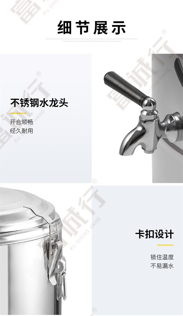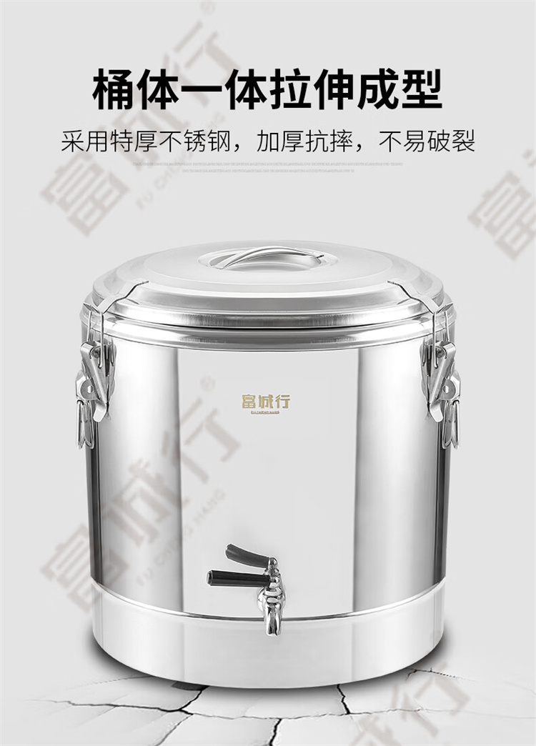 商品名称:【精选】富诚行 特厚不锈钢商用保温桶 大容量奶茶桶 开水桶 饭桶 无龙头 35*40cm (30L)