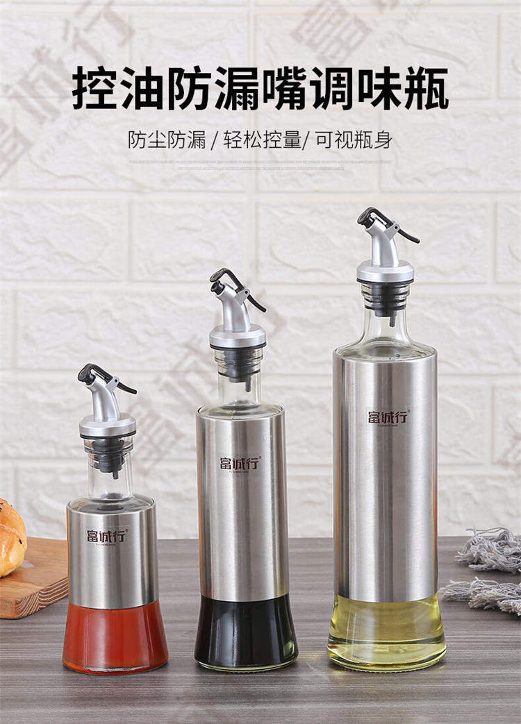 商品名称:【精选】富诚行 不锈钢玻璃油壶 调料瓶 油醋瓶 控油防漏嘴调味瓶 500ml(单个装)