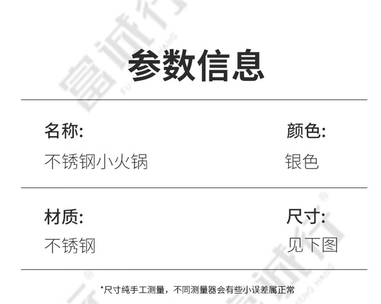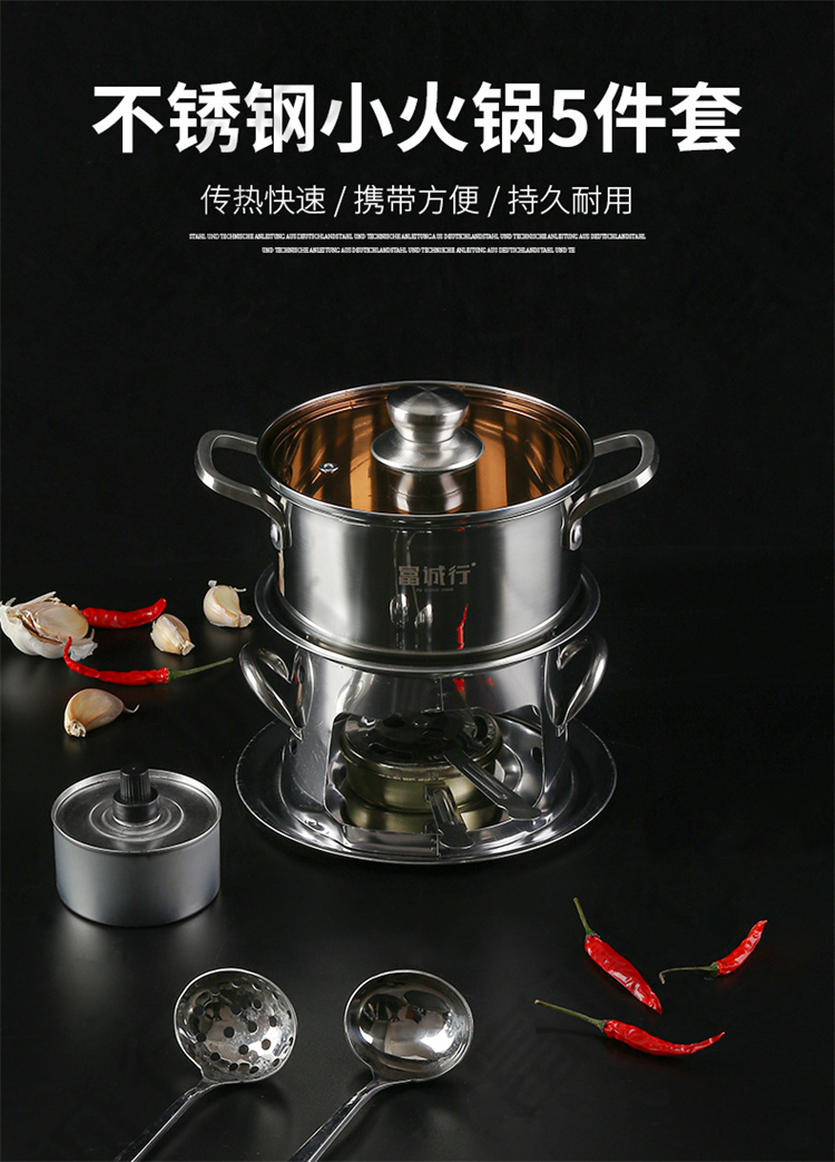 商品名称:【精选】富诚行 304不锈钢火锅单人小火锅 一人一锅火锅炉 酒精炉小火锅干锅 6厘加厚漏勺