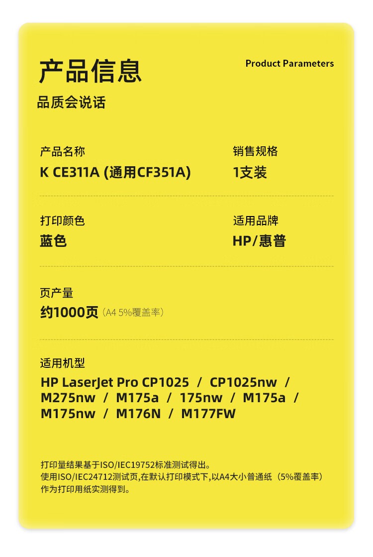 商品名称:【精选】科思特(KST) CE311A 1000页 适用HP CP1025 M175a M275n 126A M177FW M153 M177 Canon LBP7010C LBP7018C 粉盒 蓝色 (计价单位:支)
