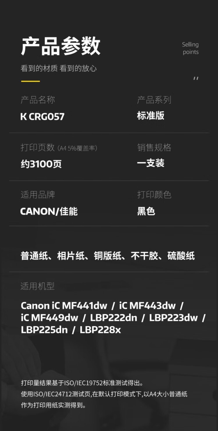 商品名称:【精选】科思特(KST) CRG057专业版 不带芯片 适用佳能Canon ic MF441/443/449dw 黑色 硒鼓 黑色 (计价单位:个)
