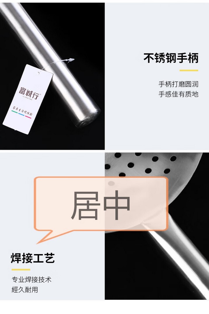商品名称:【精选】富诚行(GBHX) 不锈钢1.2厚钢柄漏壳 直径26cm 计价单位:个