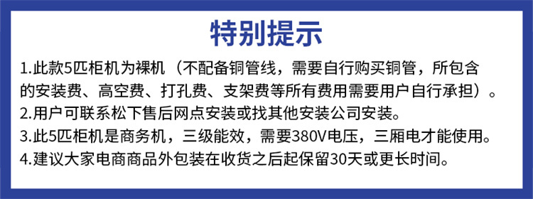 商品名称:【精选】松下(Panasonic) 5匹立柜式单冷空调 HC45FY02 强速制冷380V