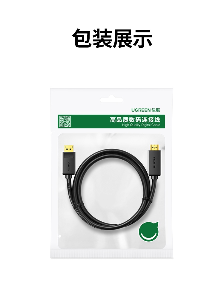 商品名称:【精选】绿联 UGREEN DP转HDMI转接线 Displayport to HDMI 10202 2米