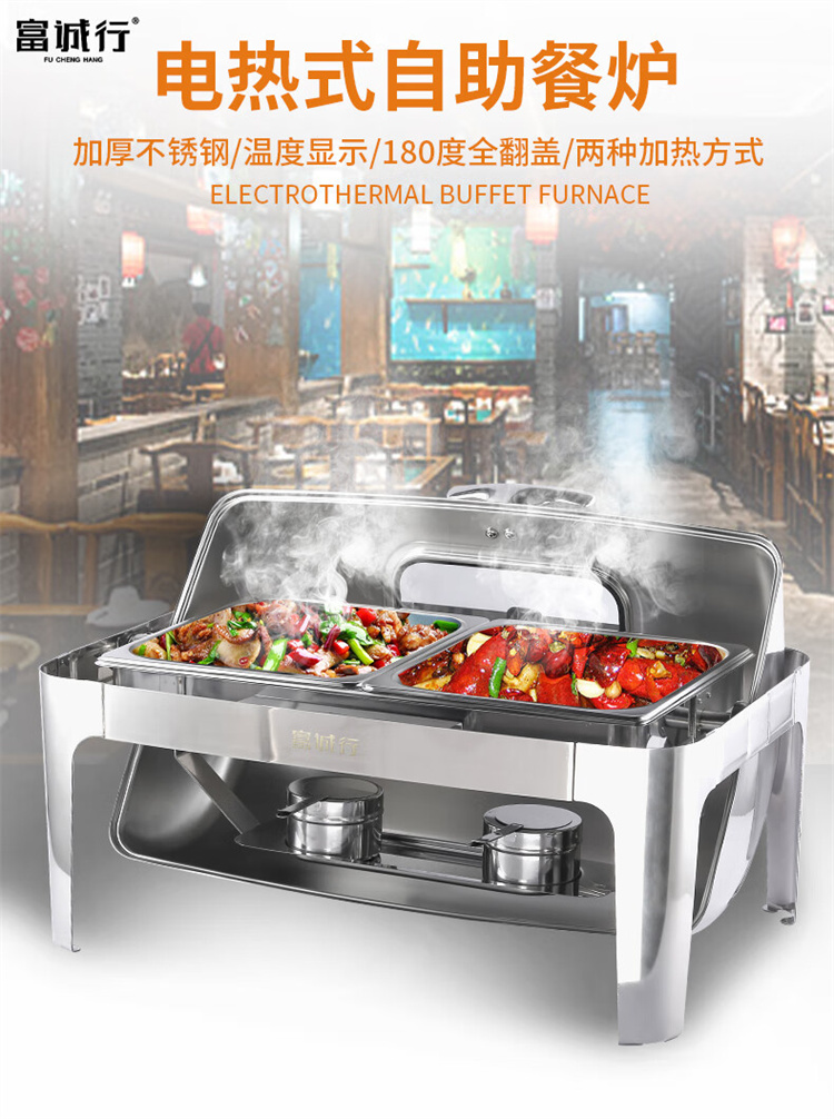 商品名称:【精选】富诚行 FG09(GBHX) 电热式自助餐布菲炉 双格 9L 计价单位:台