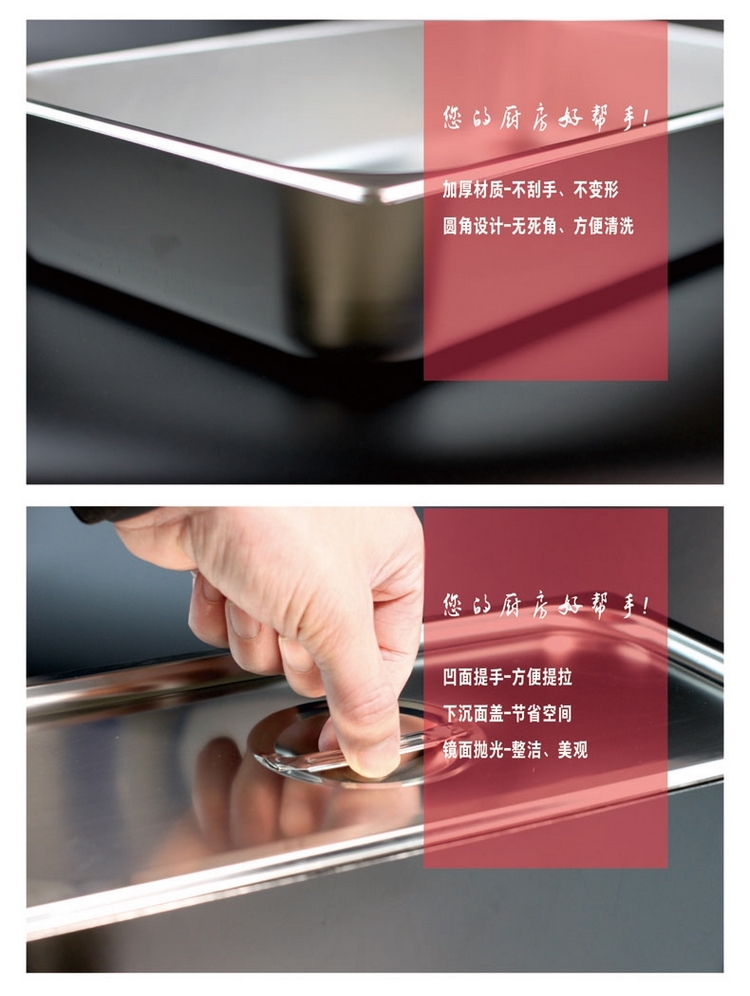商品名称:【精选】富诚行 1/6(GBHX)美式份数盘 不锈钢 方形 带盖 17*16*10cm 计价单位:套