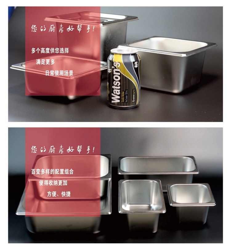 商品名称:【精选】富诚行 1/2(GBHX)美式份数盘 不锈钢 方形 带盖 32.5*26.5*6.5cm 计价单位:套