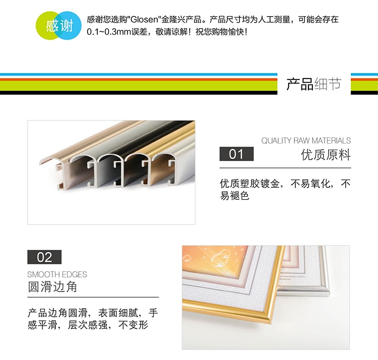 商品名称:【精选】金隆兴 BB-A3 420*297 1/5/40 镜框 (计价单位:个) 金色