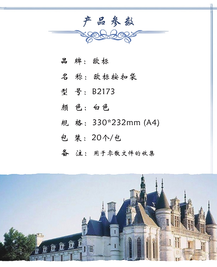 商品名称:【精选】欧标 按扣袋 B2173 A4 18C PP料 白色 白色 A4