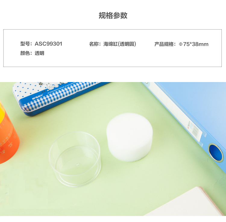商品名称:【精选】晨光 M&G 海绵缸 ASC99301 高38mm*直径75mm (透明圆)