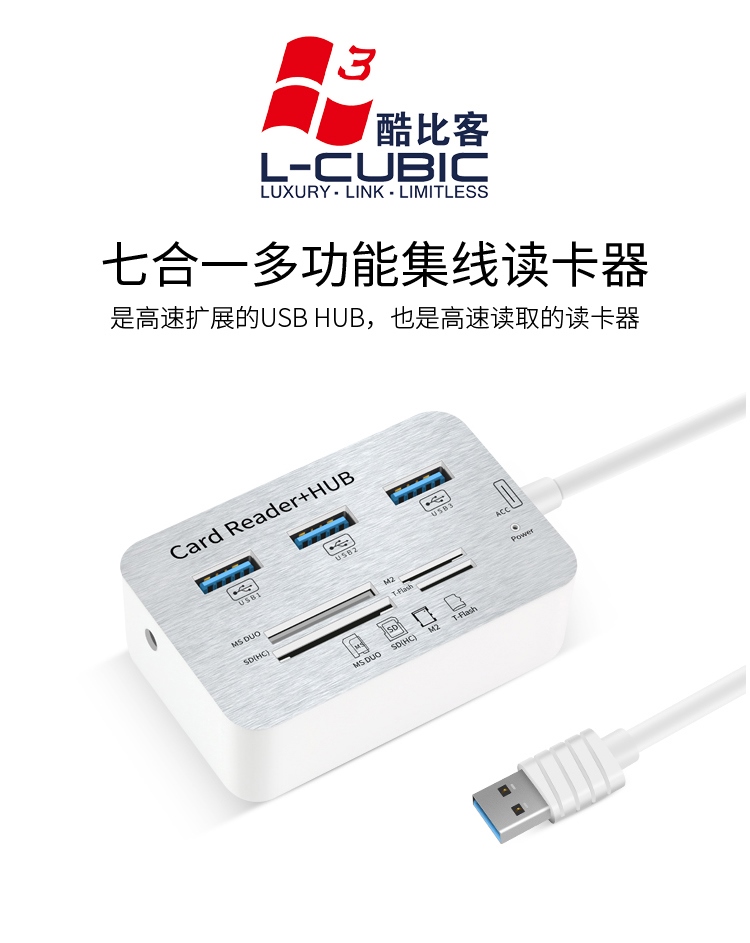 商品名称:【精选】酷比客 L-CUBIC USB集线器 LCHC14BK 6口 USB3.0 (黑色) 带读卡器