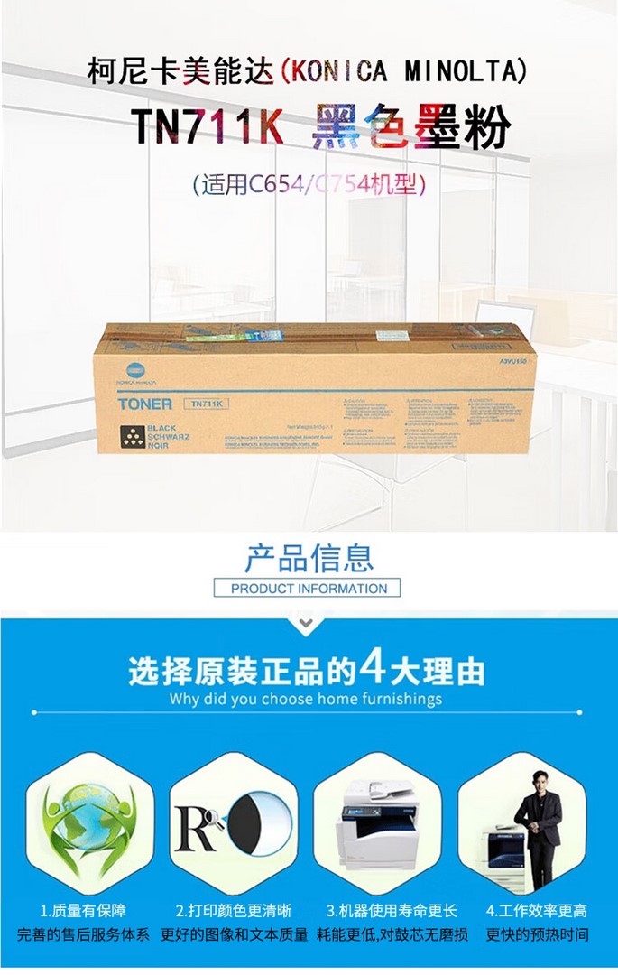商品名称:【精选】柯尼卡美能达 TN711K 黑色墨粉碳粉 (适用C654/C754机型) (单位:个)