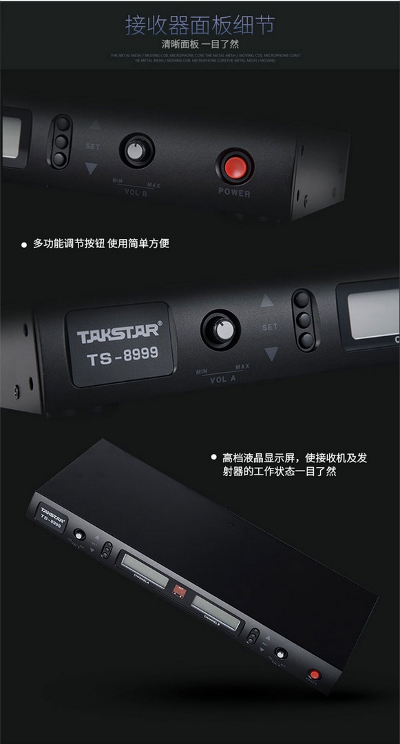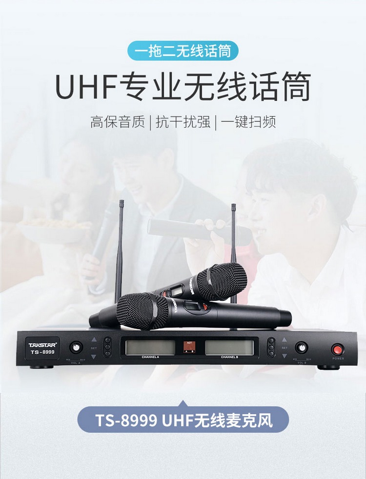 商品名称:【精选】得胜(GBHX)(TAKSTAR)TS-8999 U段无线话筒一拖二 无线麦克风专业演出会议手持家庭KTV唱歌卡拉ok(套)