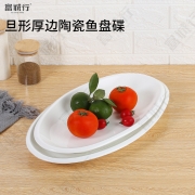 【精选】富诚行 陶瓷旦形厚边鱼盘 18英寸*2个